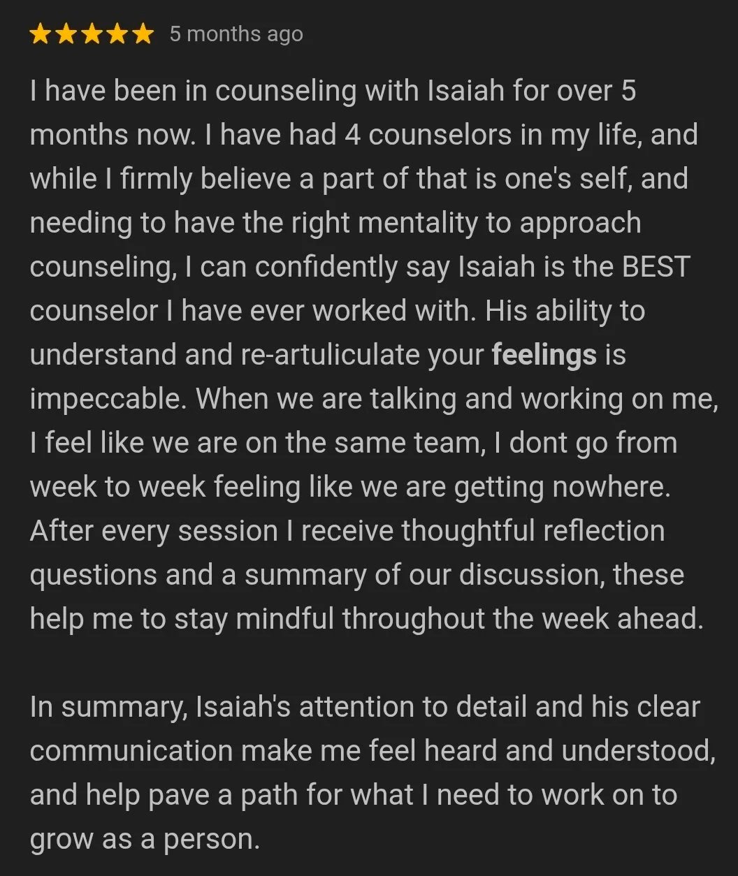 As a Christian + licensed counselor (𝚿+✞) + trauma professional, I help people move past trauma, anxiety, perfectionism, depression, insecurity, regret, rumination, and avoidance. Together, let’s assess options, unlearn old patterns, and look forward!
